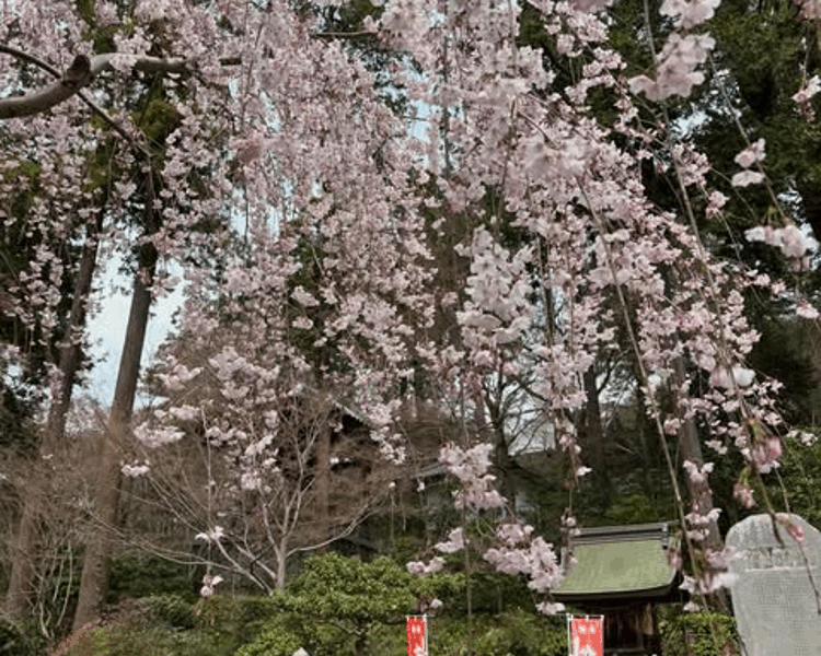 坂出市にある河津桜に彩られた雲井御所。崇徳上皇が3年間滞在さ …