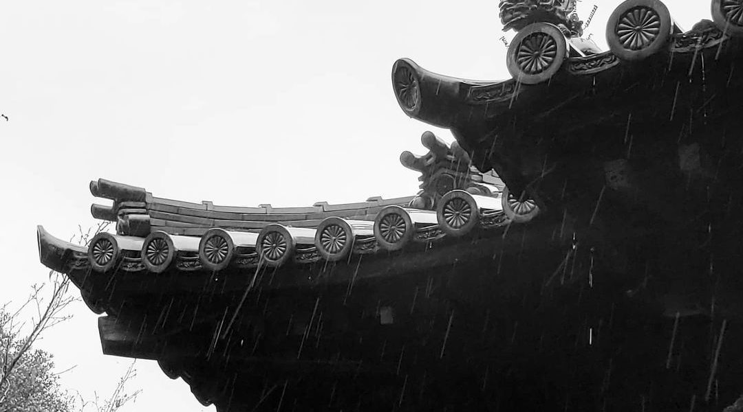 雨が似合う…崇徳上皇ゆかりの地…屋根の唐獅子が空に飛び上がり …
