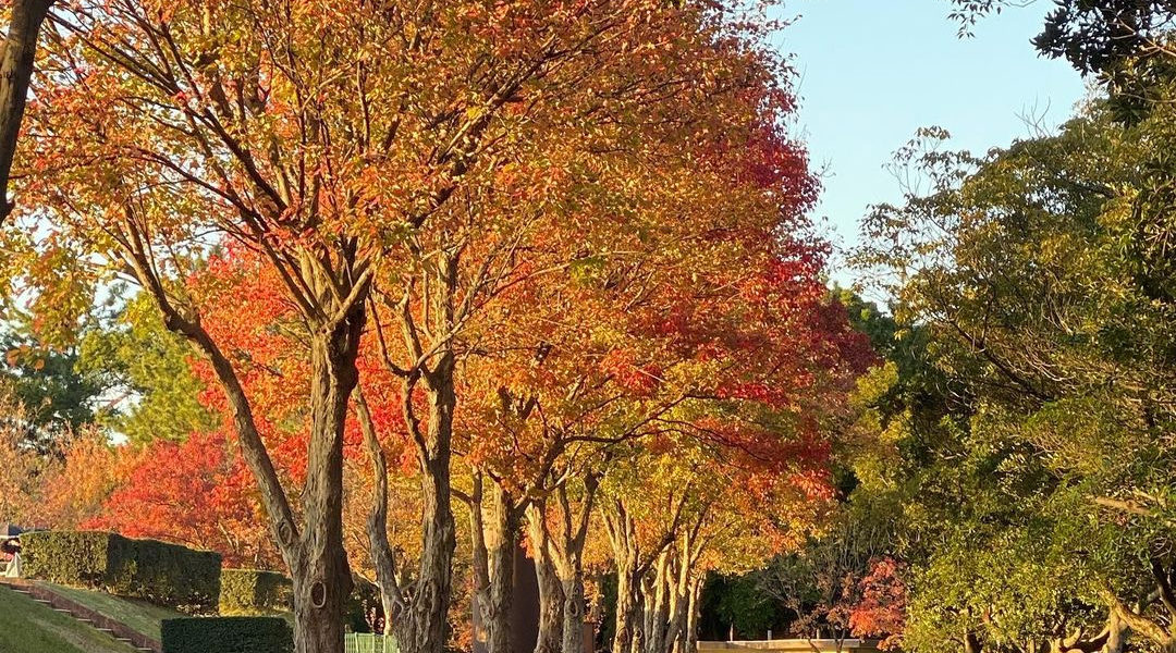 足元のピンク、赤の落ち葉がとても綺麗 Photo by @j …