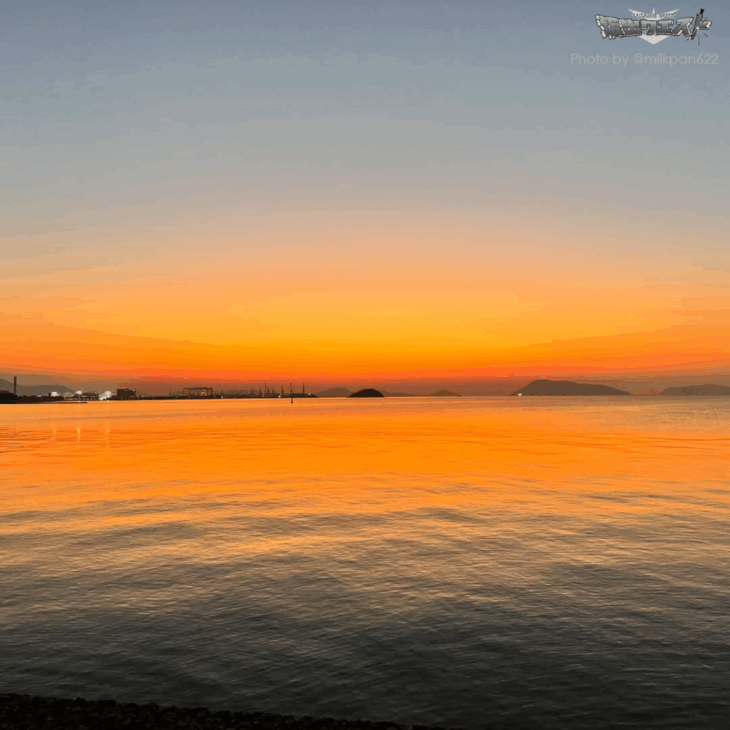 瀬戸内の穏やかな海に夕日が沈む、この光景を