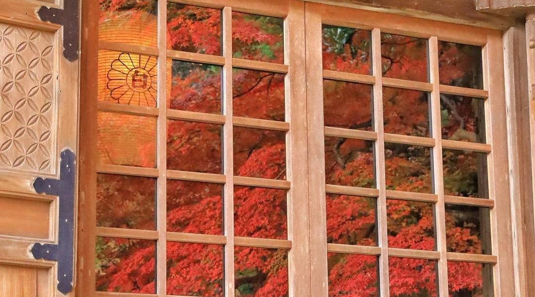 御堂に映った紅葉